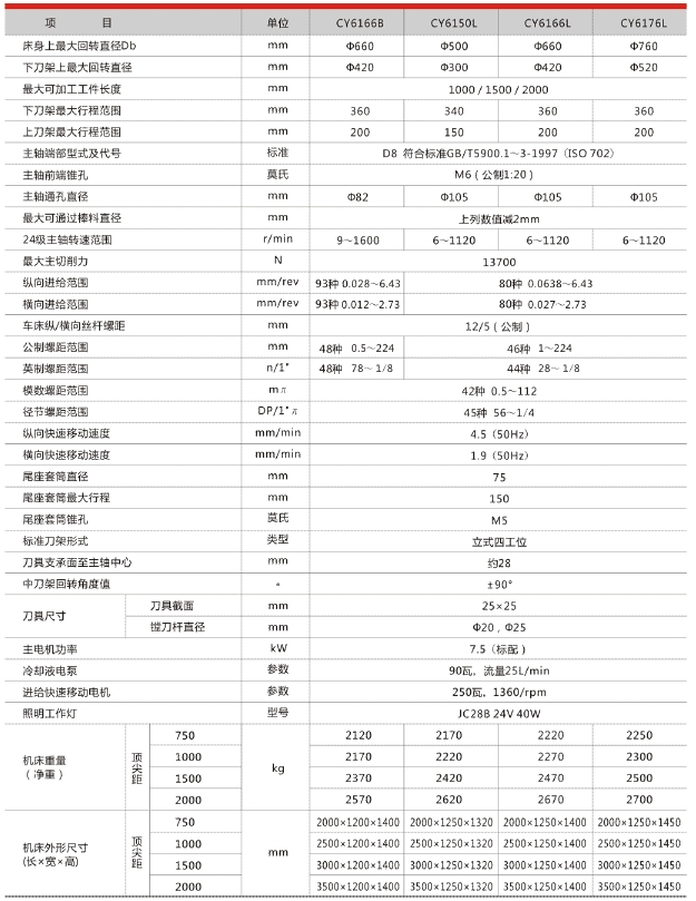 CY6240(B)、CY6266L、CY6276L系列普通車床